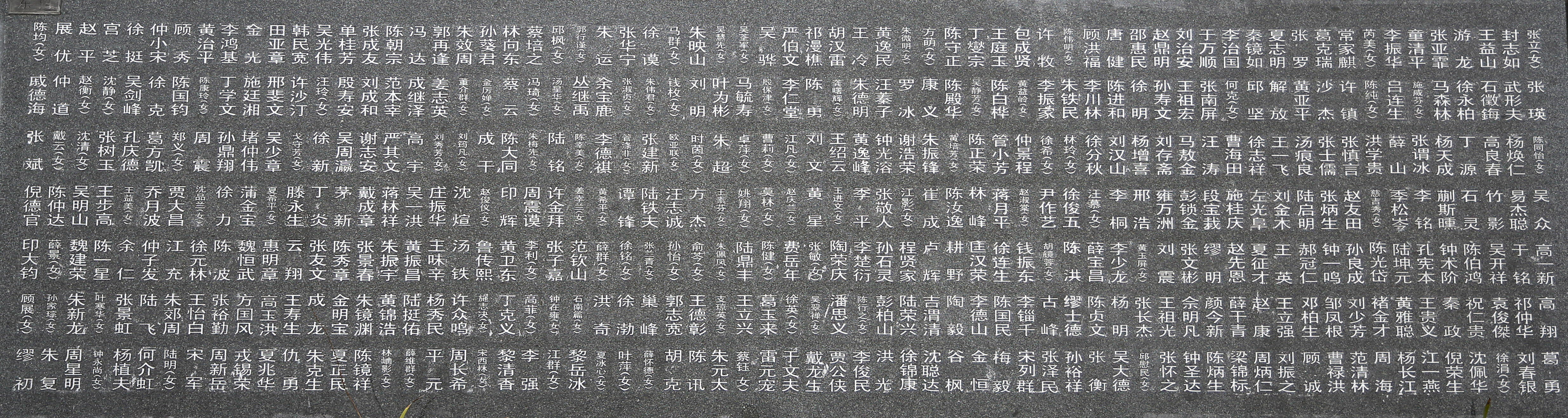 纪念碑上的现有新四军战士姓名分布示意图