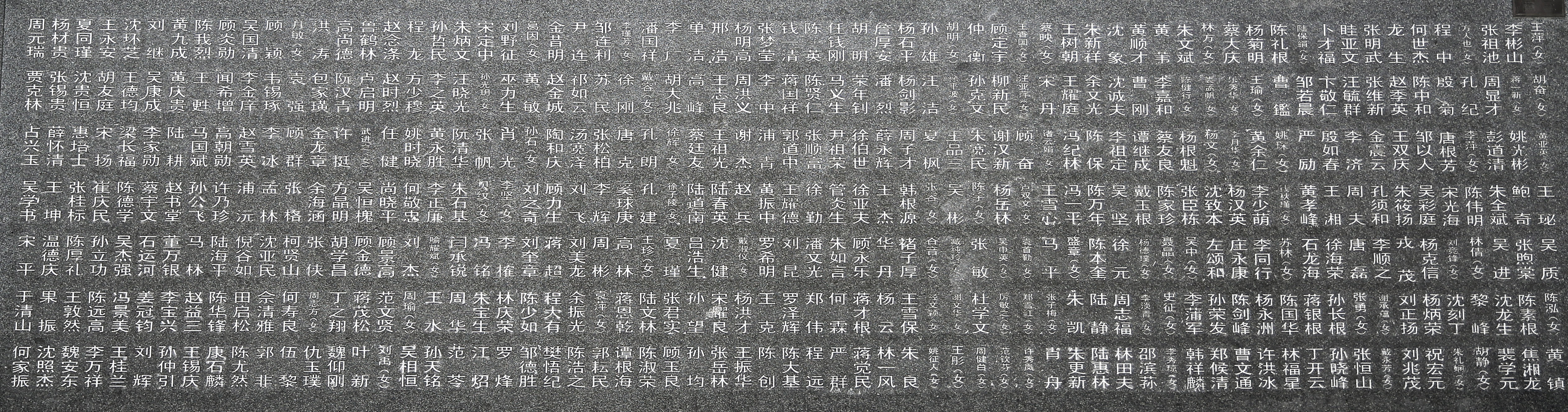 纪念碑上的现有新四军战士姓名分布示意图